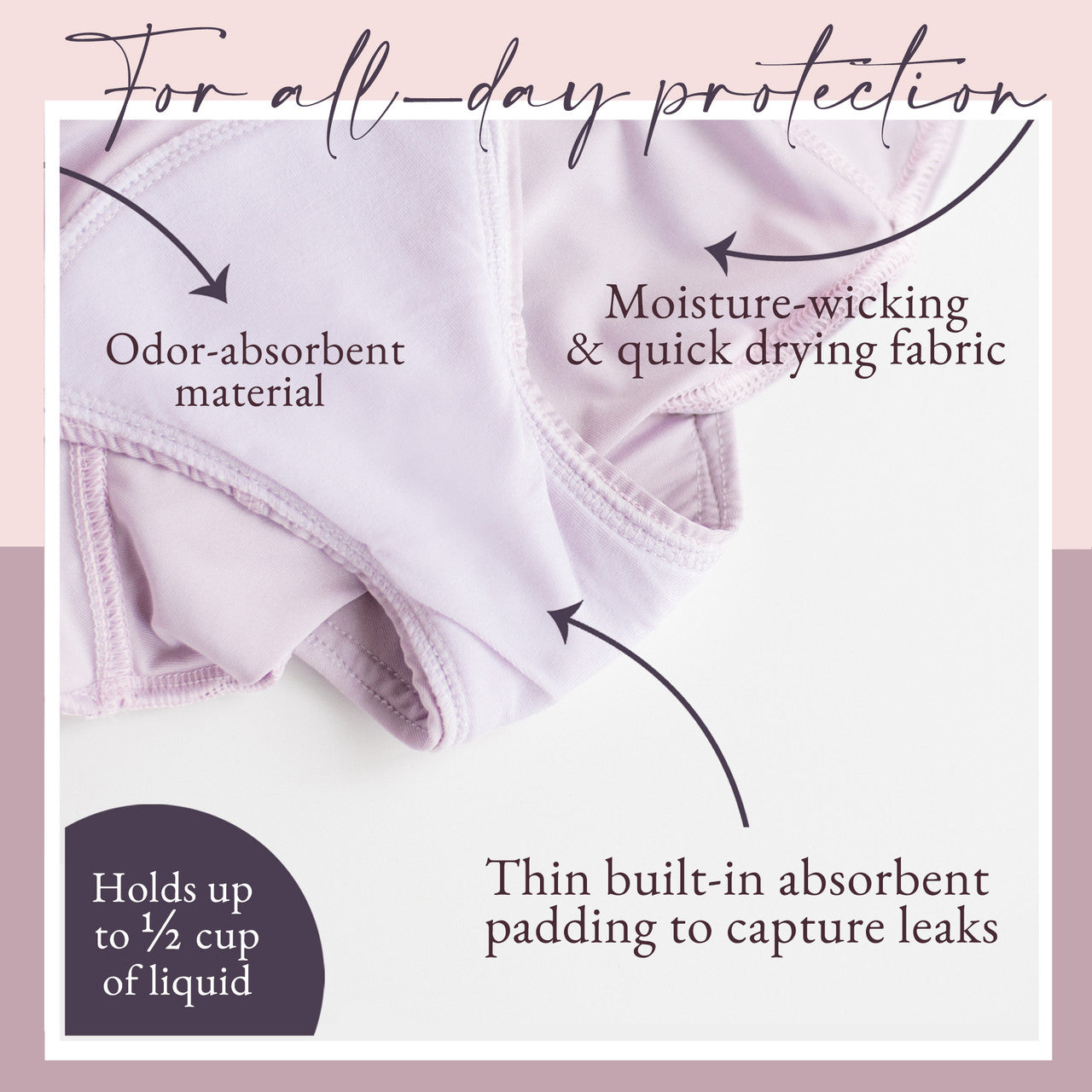 Lumana's built-in super thin, yet super absorbent pad holds up to a 1/2 cup of liquid and the equivalent of a Super Tampon in Menses - eliminating stains, odors, and leaks while guaranteeing peace of mind.