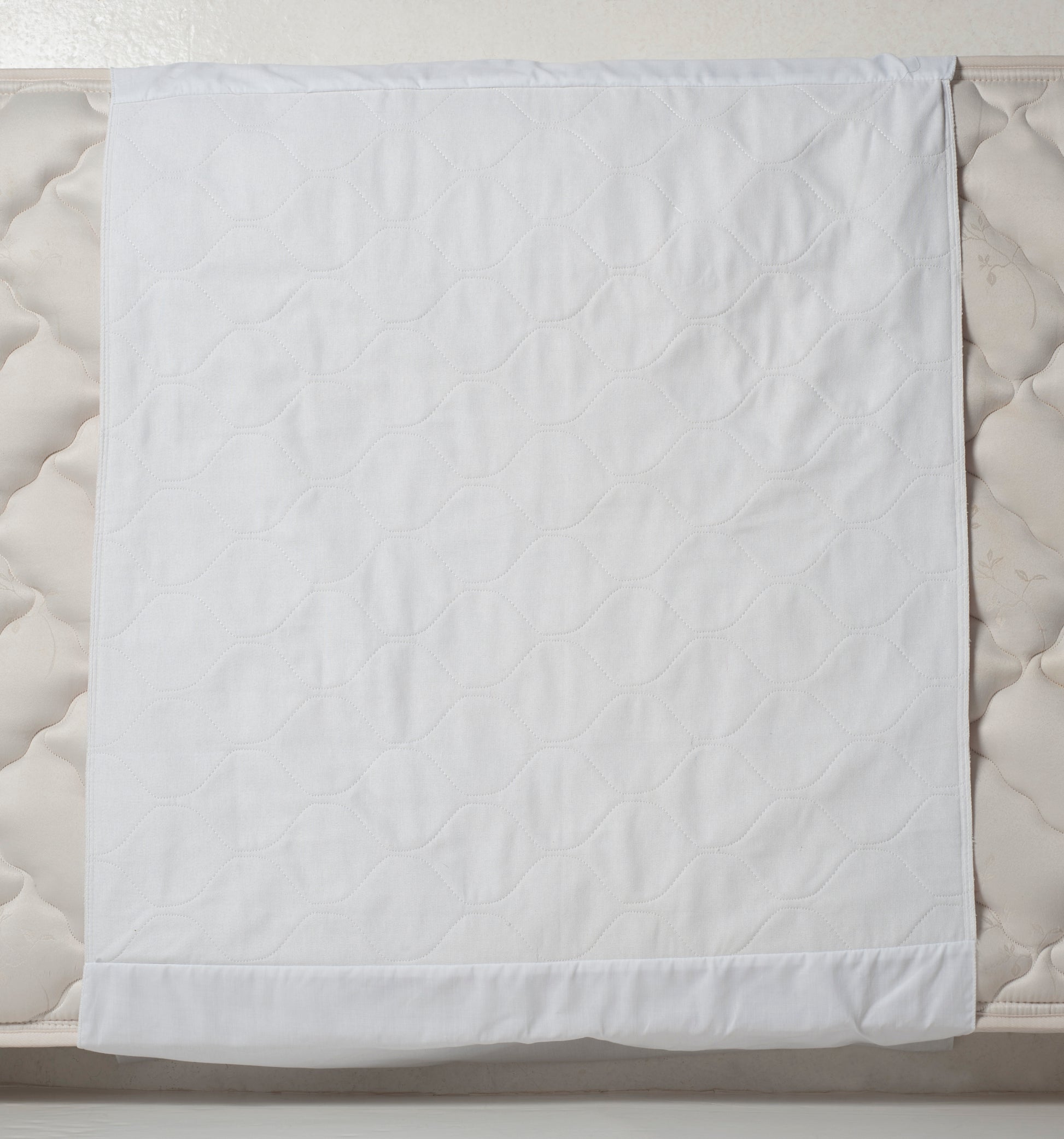 The Mattress Pad with Wings surface is soft and comfortable while protecting from wetness. It is complete with large, fabric wings to help secure the pad in place. It is washable and reusable making it far more economical than disposable bed pads used for incontinence. This is a specially designed, reusable, and washable mattress pad that ensures protection for you or your loved one and the bed! The bed pad is 36 inches by 34 inches with three layers of protection. The 18 inch long wings attached to either side of the bed pad are long enough to tuck under one side of a bed or both (if twin or hospital type bed). The wings tuck under the mattress and prevent the pad from slipping or moving. The top layer of the bed pad is made from an 80/20 cotton/polyester blend called IBEX. This top layer is quilted to a top quality, 8 oz poly soaker which holds the moisture. The third, and bottom layer, is the moisture proof layer; it is made from a knitted, vinyl, barrier fabric. The bed pad is finished with double bound edges for a long life of many washings. This amazing mattress pad will hold up to 60 ounces of liquid.