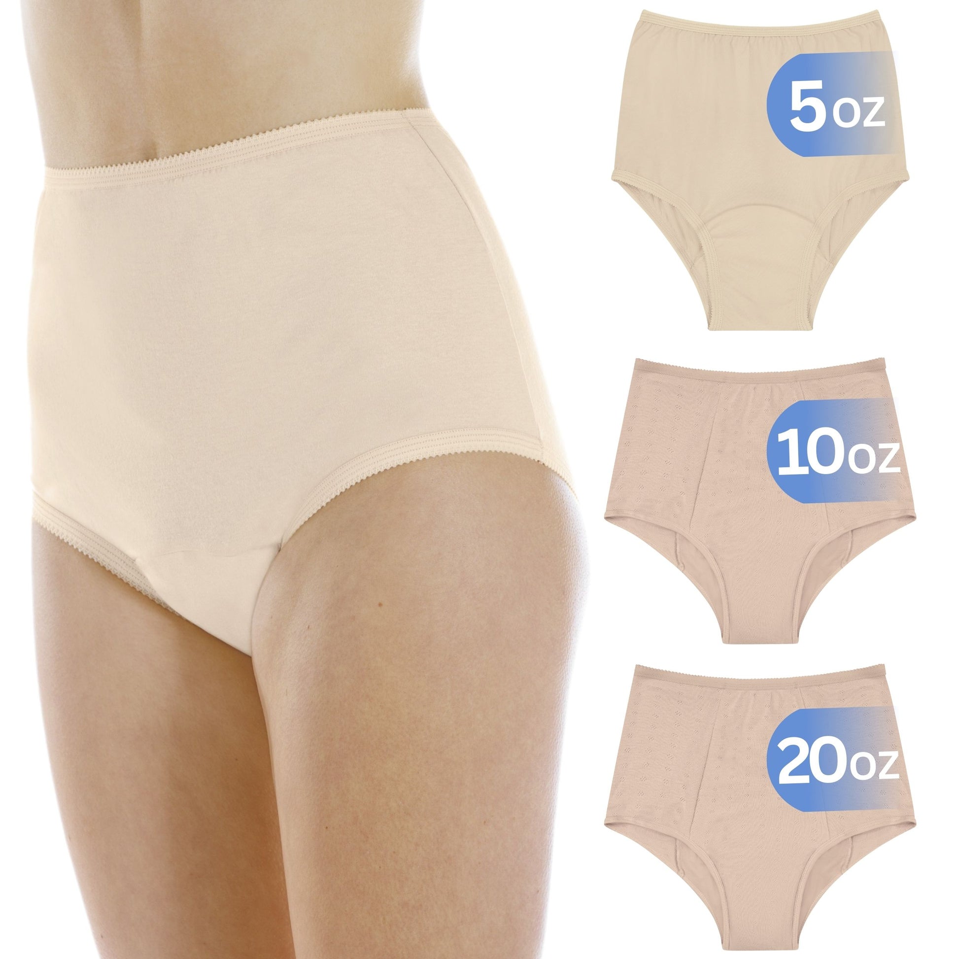Wearever Women’s 3 Pair Starter Pack provides reliable protection for light to heavy incontinence, combining comfort, style, and reusability. Included are three panties featuring increasing absorbency levels—5oz, 10oz, and 20oz—each incorporating the Unique-Dri sewn-in pad that effectively traps liquid for all-day confidence. Crafted from soft cotton/poly jersey with antimicrobial Aigon fibers, these panties reduce bacteria and odor. Designed to withstand 200-250 washes, they offer a practical, sustainable alternative to disposables without sacrificing performance or comfort. This starter pack delivers expert protection tailored to varying needs.